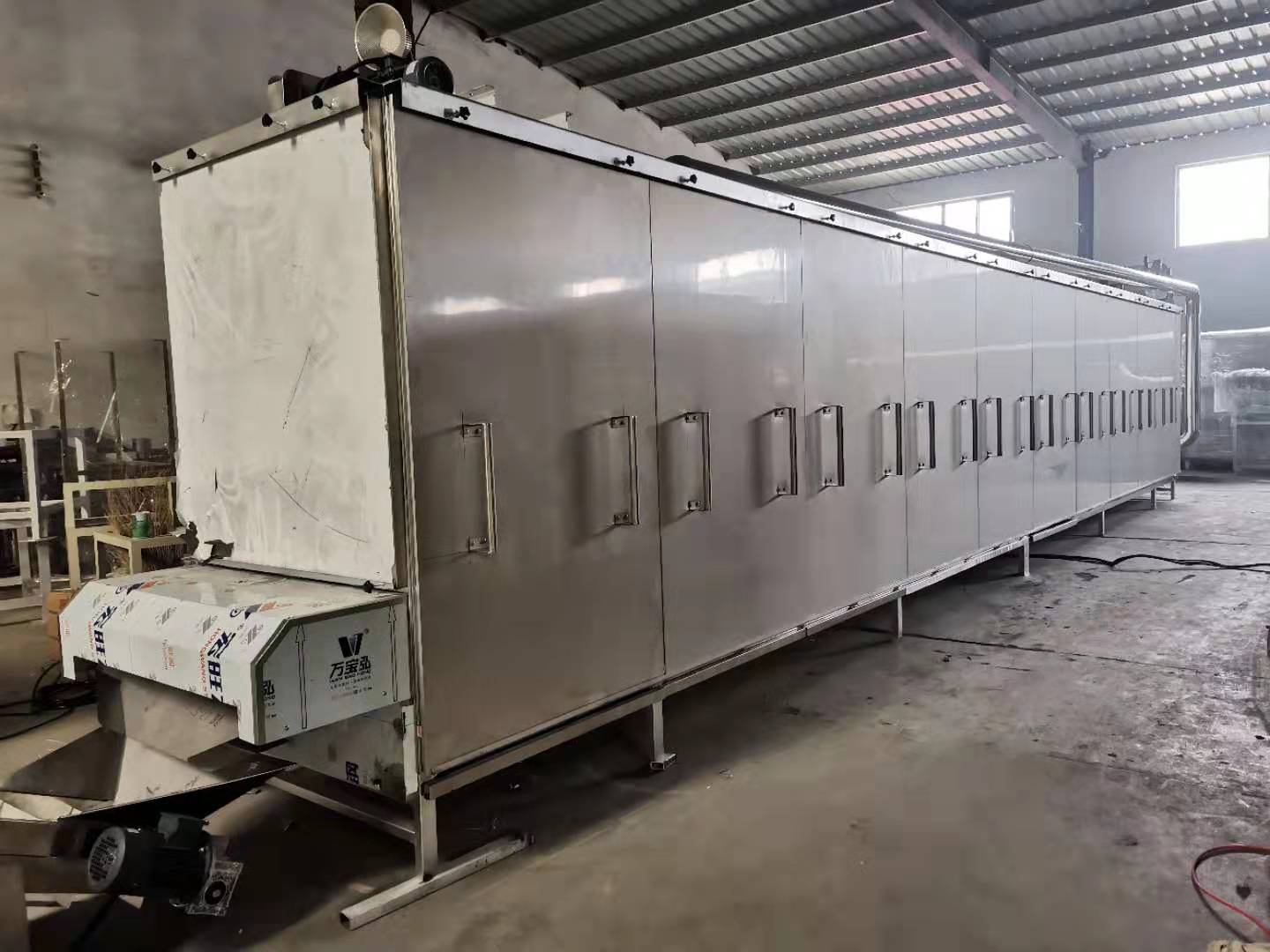 7、多層烤箱:烤箱多為電烤箱,溫度在0-200度之間通過(guò)控制柜自行調(diào)節(jié),內(nèi)部為不銹鋼雙層網(wǎng)袋,烘烤時(shí)間可以根據(jù)速度調(diào)節(jié),通過(guò)烘烤使得主料與芯料在一定程度上滲透,增加口感,同時(shí)減少物料水分,增加保質(zhì)期。