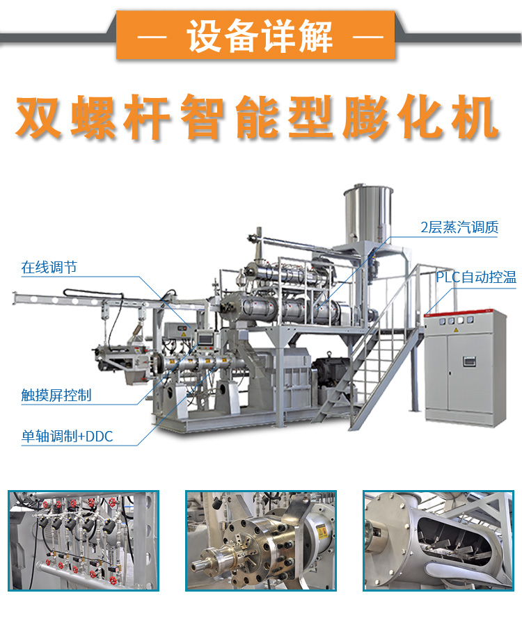 3. 膨化處理:經(jīng)過破碎與烘干的原料會(huì)被送入膨化機(jī)中,通過高溫高壓的處理,使原料膨化。這一步可以增加飼料的體積,提高其在水中的穩(wěn)定性和適口性。