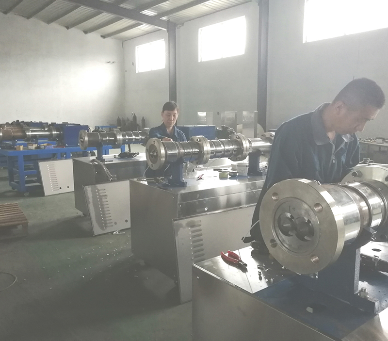 (2)擠出系統(tǒng): 由螺桿,機筒,連接段組成; 螺桿為38crmoal材料,滲氮深度5mm,耐磨耐用,機筒為國標45號鋼,與螺桿配合間隙控制在0.5mm以內