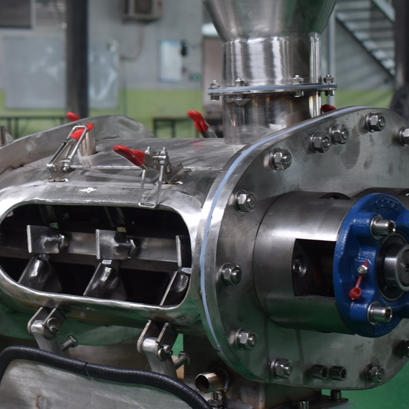 (2)擠出系統(tǒng): 由螺桿,機筒,連接段組成; 螺桿為38crmoal材料,滲氮深度5mm,耐磨耐用,機筒為國標45號鋼,與螺桿配合間隙控制在0.5mm以內(nèi)