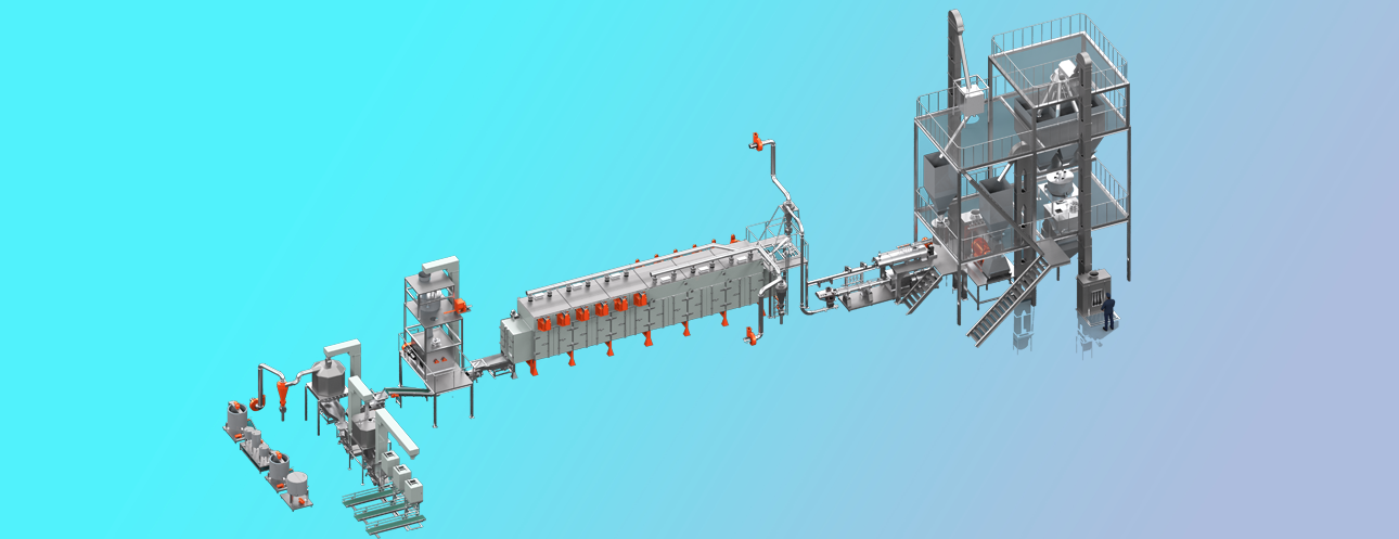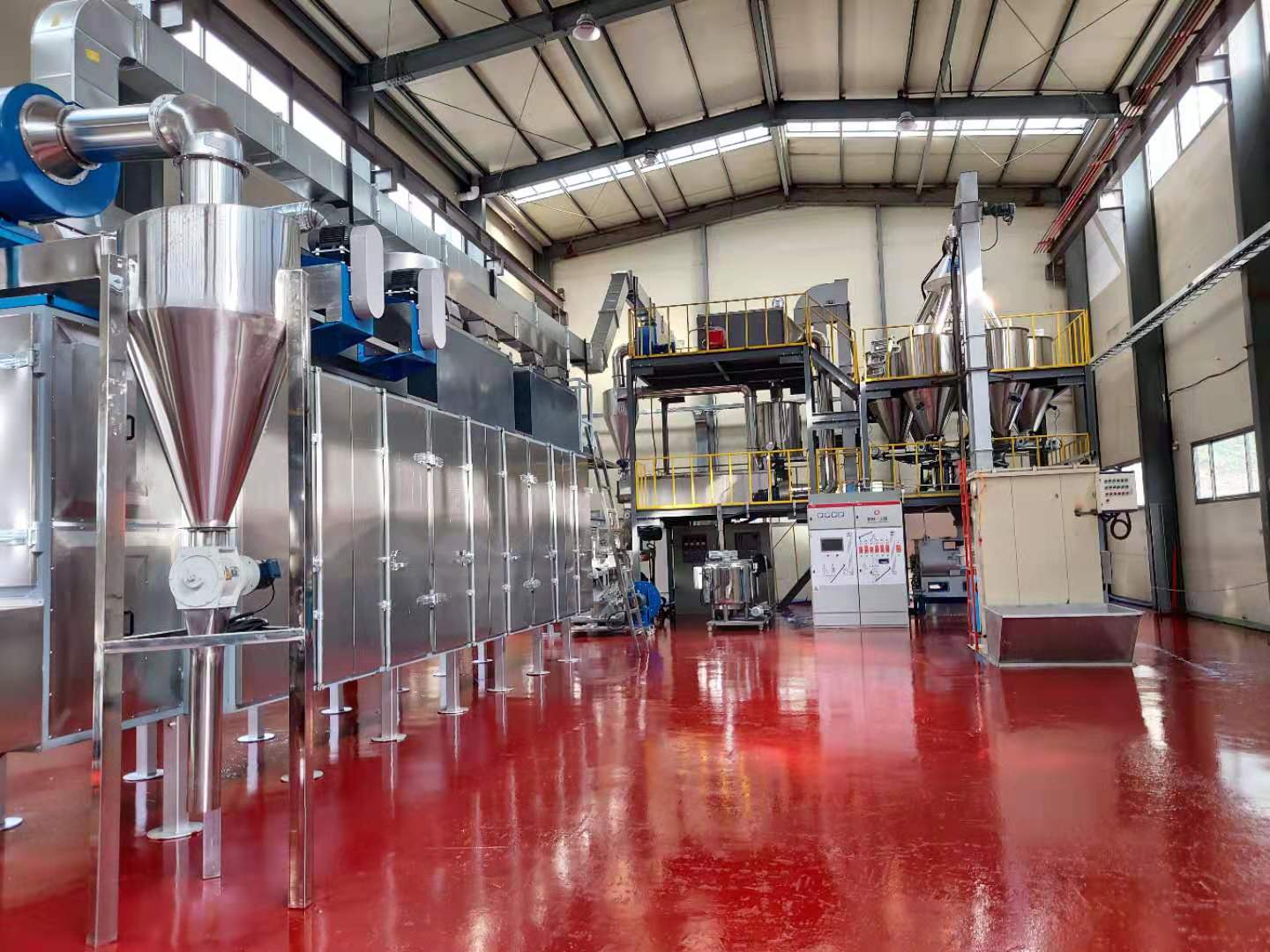 技術方面寵物食品生產(chǎn)線設計自動配料混合粉碎系統(tǒng)、雙螺桿擠壓膨化機、環(huán)流帶式干燥機,真空噴涂機,運行設有自動控制中心。整套設備全部自動運行。降低勞工成本投入,低成本,高產(chǎn)能。
