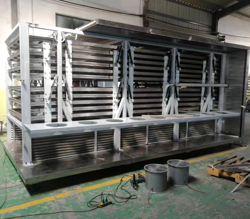 干燥時物料從設(shè)備頂部的加料口進入,在振動和自身重力的作用下,物料從上層自下層往復(fù)移動,后從底層的出料口排出。熱空氣從底層進入,穿過帶孔床層往動,同時與床層上的物料進行充分的傳熱和傳質(zhì),后通過頂部的排濕口排出。